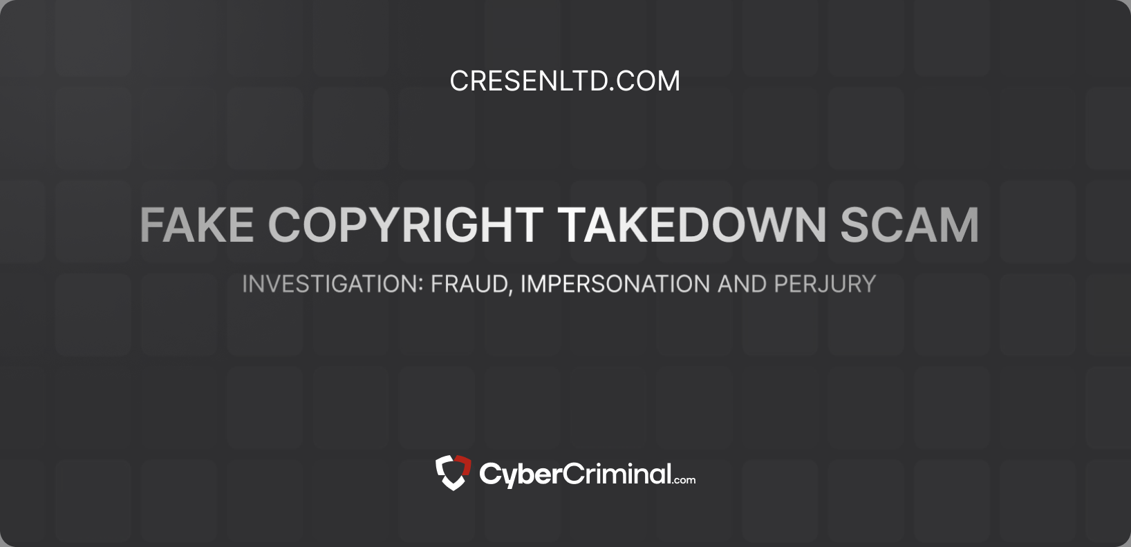 We are investigating CresenLTD.comfor allegedly attempting to conceal critical reviews and adverse news from Google by improperly submitting copyright takedown notices. This includes potential violations such as impersonation, fraud, and perjury.