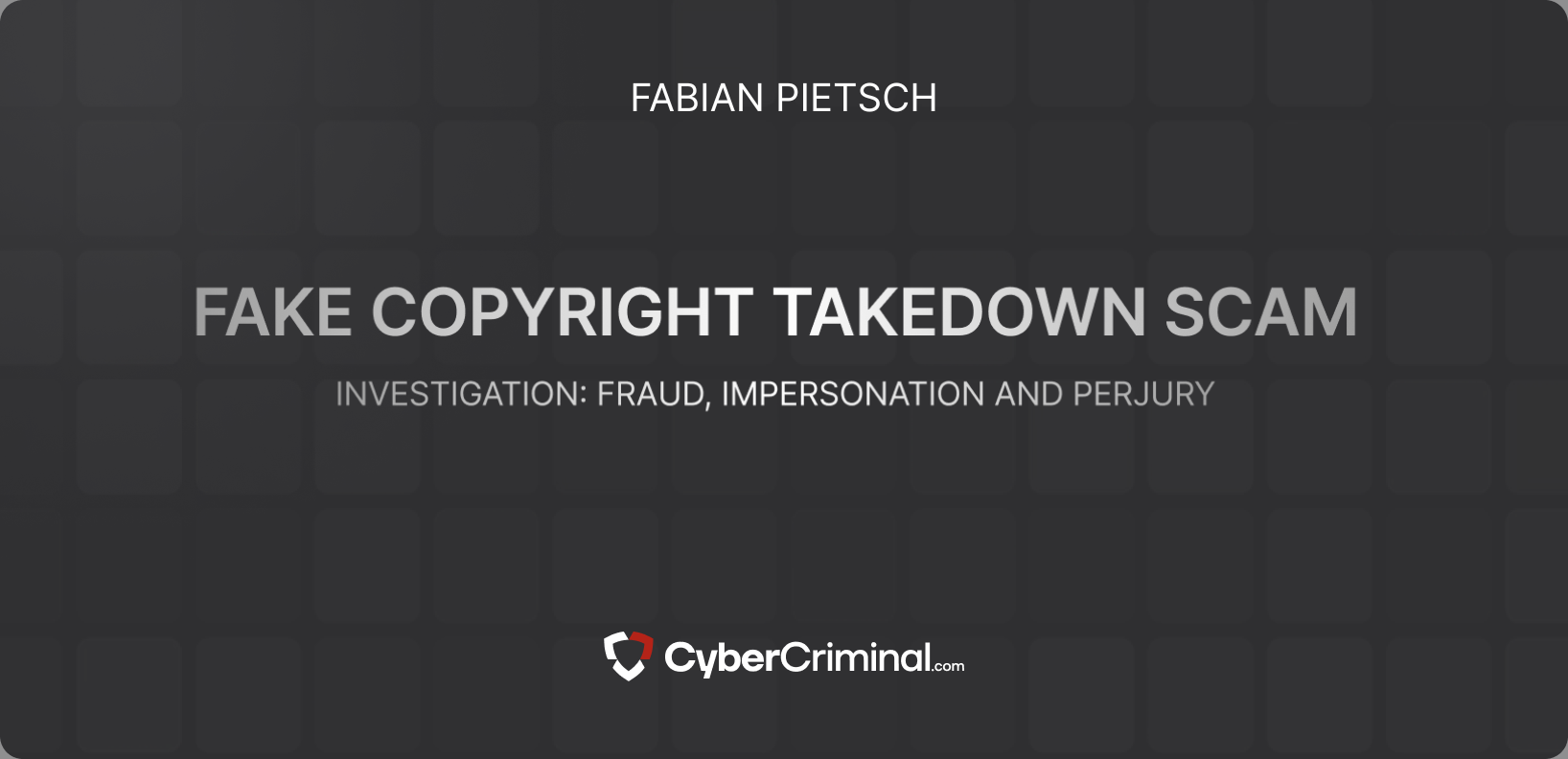 We are investigating Fabian Pietsch for allegedly attempting to conceal critical reviews and adverse news from Google by improperly submitting copyright takedown notices. This includes potential violations such as impersonation, fraud, and perjury.