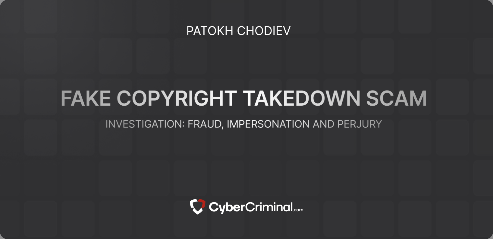 We are investigating Patokh Chodiev for allegedly attempting to conceal critical reviews and adverse news from Google by improperly submitting copyright takedown notices. This includes potential violations such as impersonation, fraud, and perjury.