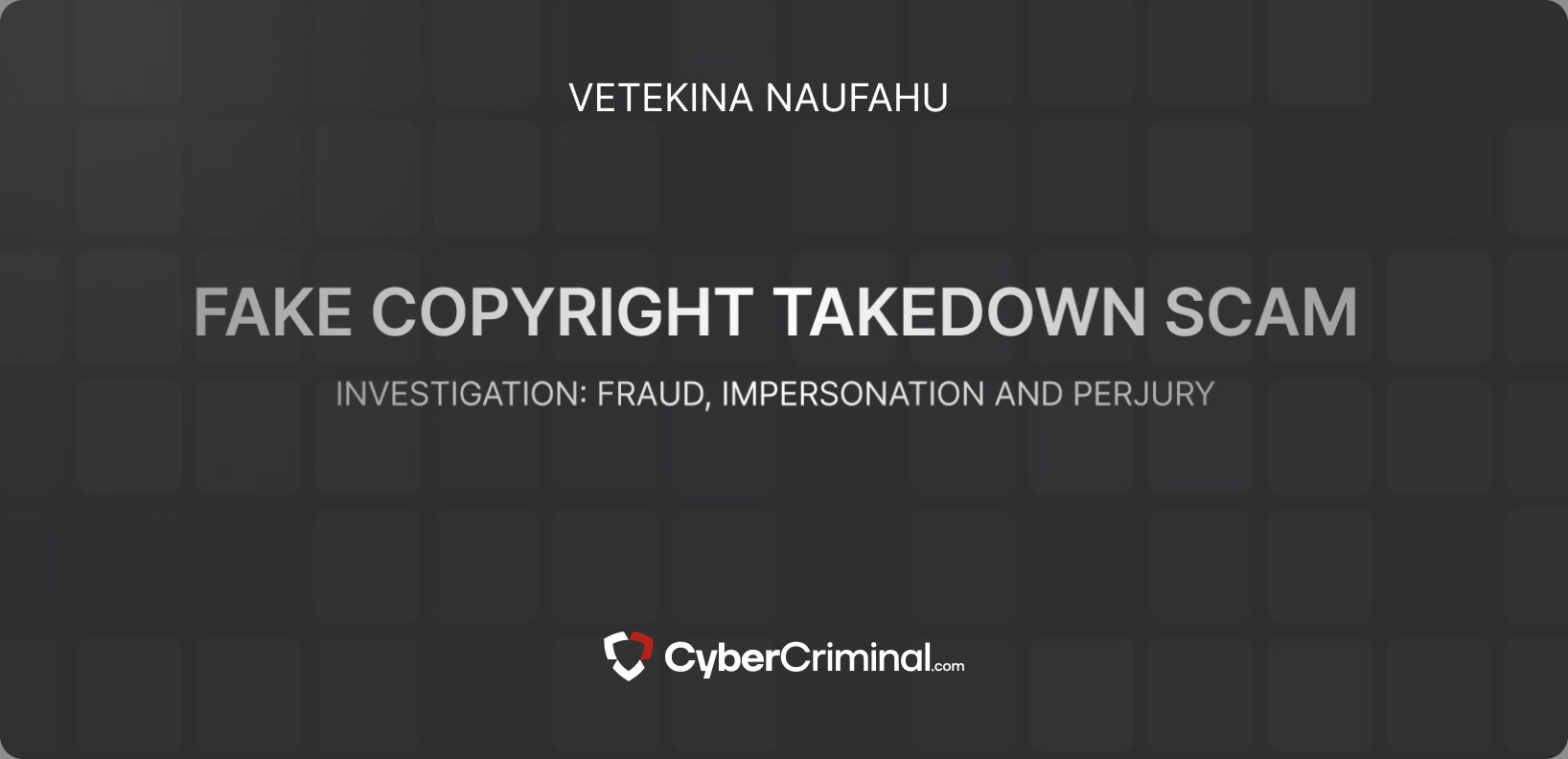 We are investigating Vetekina Naufahu for allegedly attempting to conceal critical reviews and adverse news from Google by improperly submitting copyright takedown notices. This includes potential violations such as impersonation, fraud, and perjury.